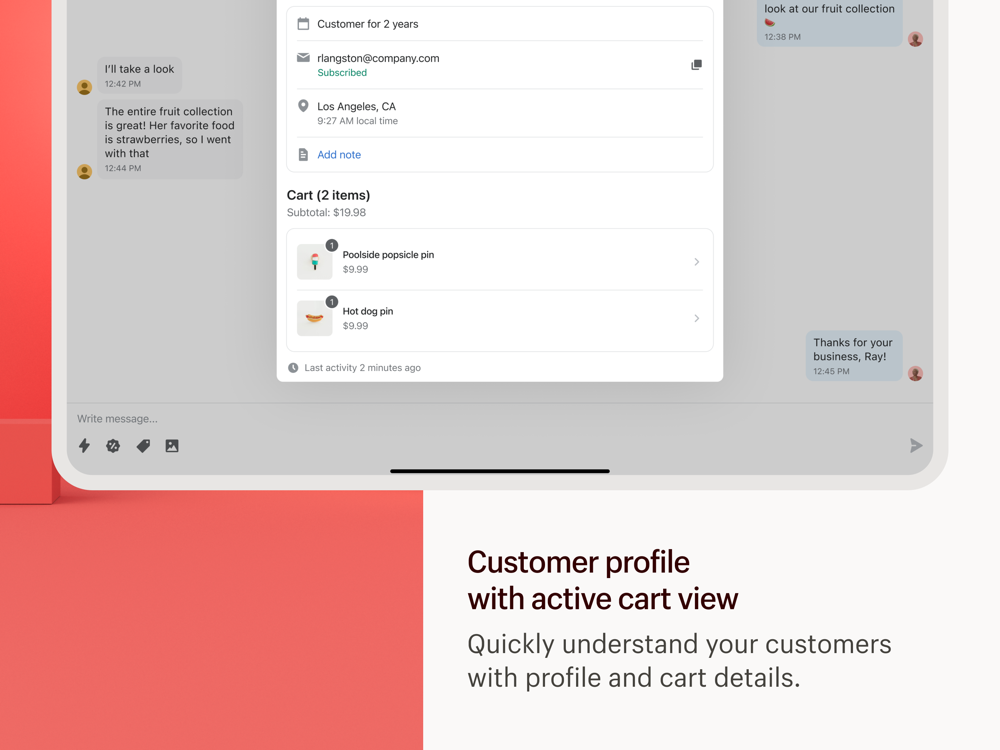 • Save time managing customer conversations from online store chat and the Shop app