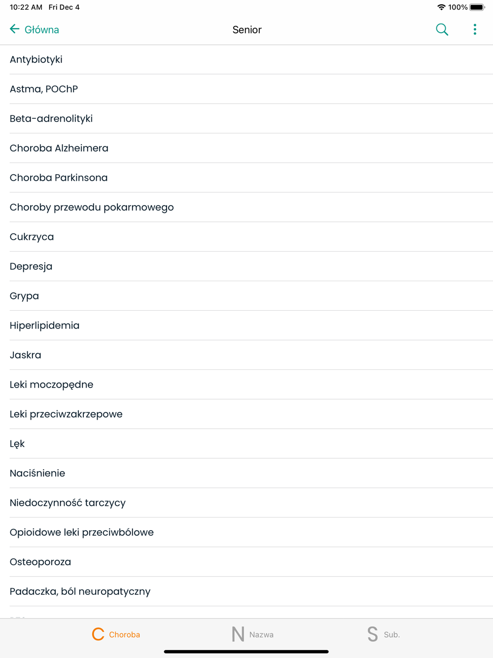 - leki dla seniora z wyszukiwaniem po chorobach, nazwach i substancji czynnej,