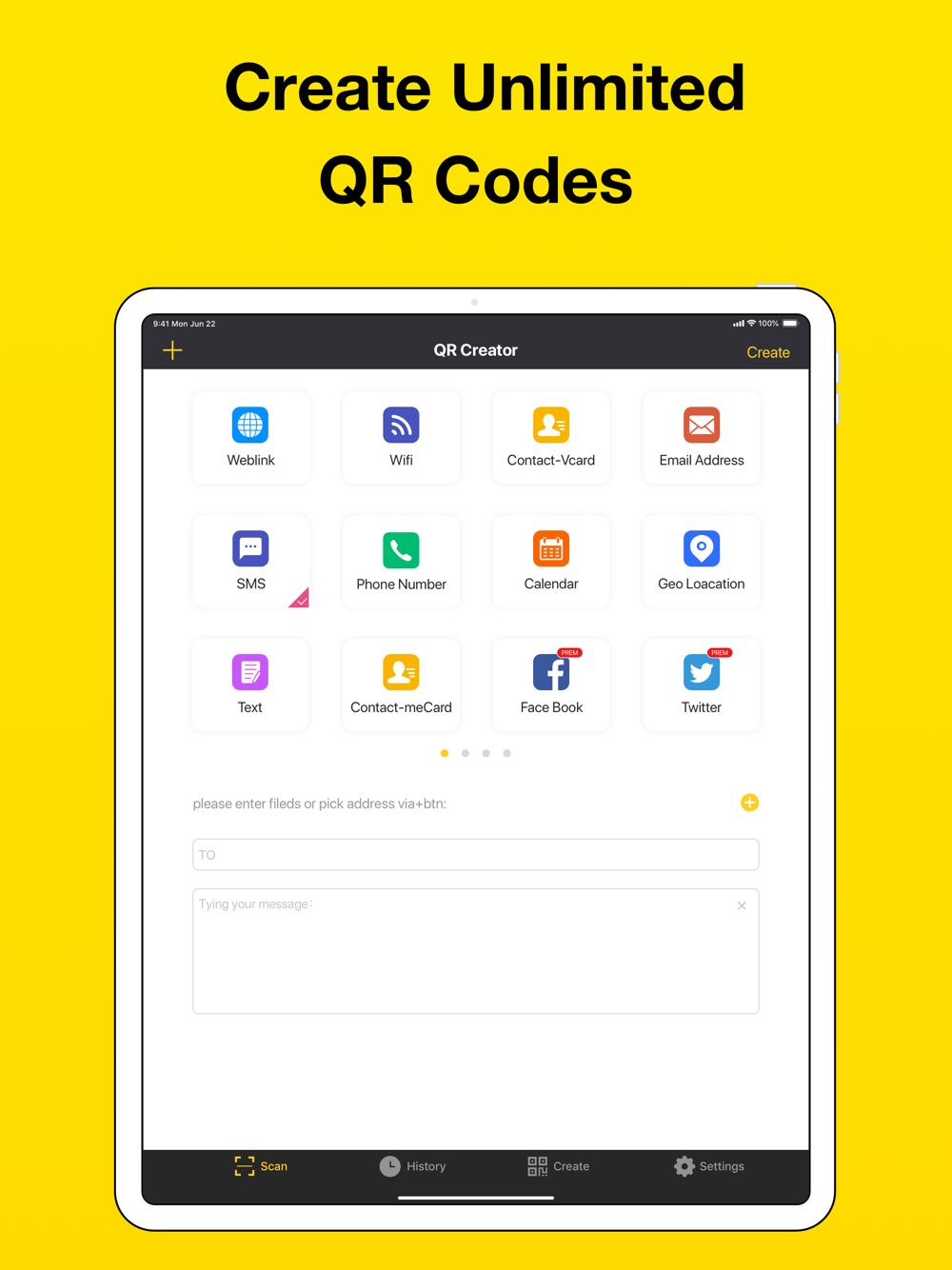 QR Reader app helps you create unlimited QR codes, such as Weblink, text, vcard, phone number, email adress, SMS, WIFI, Geo Location and Calendar, etc. You can share QR code reader and scanner results via WhatsApp, Facebook, Twitter, Gmail, WeChat, Line, E-mail, SMS, etc.