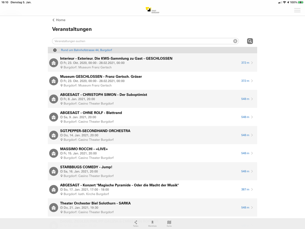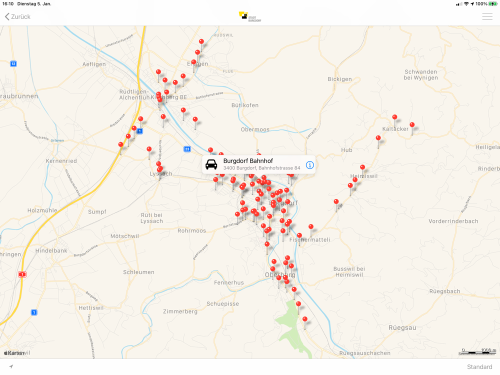Auch für die Besucher von Burgdorf bietet diese Applikation verschiedene hilfreiche Funktionen.
