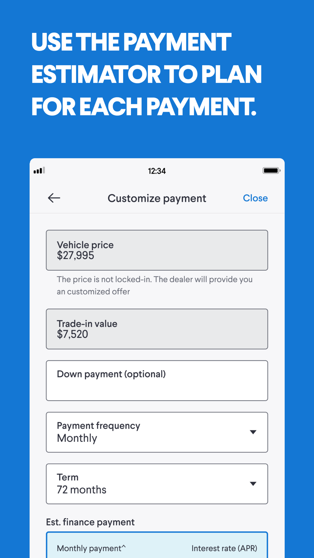 Shop on your terms. Streamline your shopping experience and complete most steps from the comfort of your home. Research and compare vehicles, estimate the trade-in value of your current car, and calculate a monthly payment plan that meets your budget.