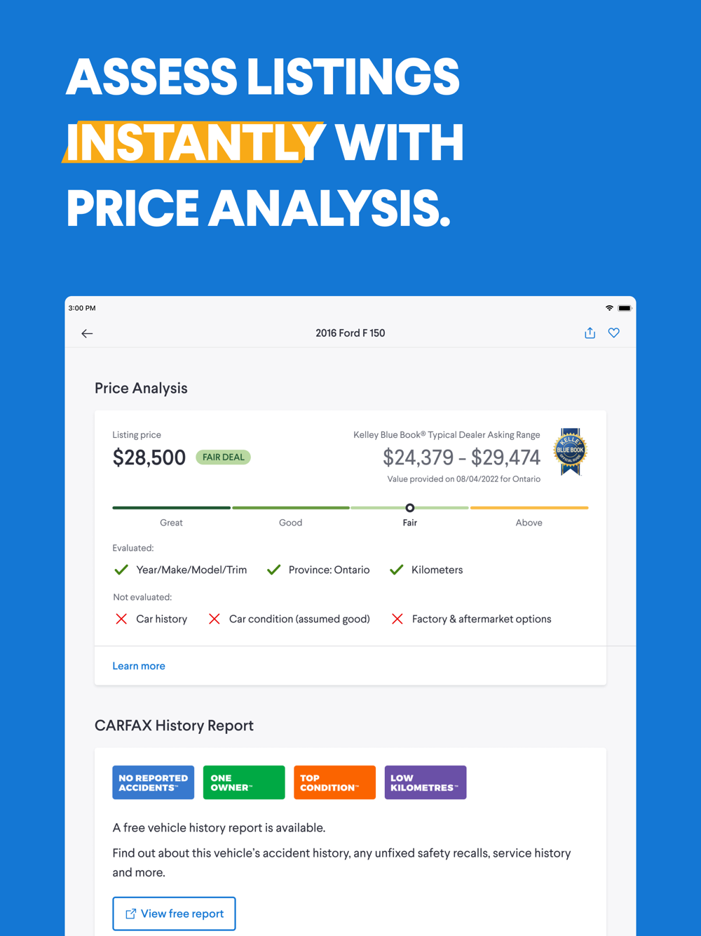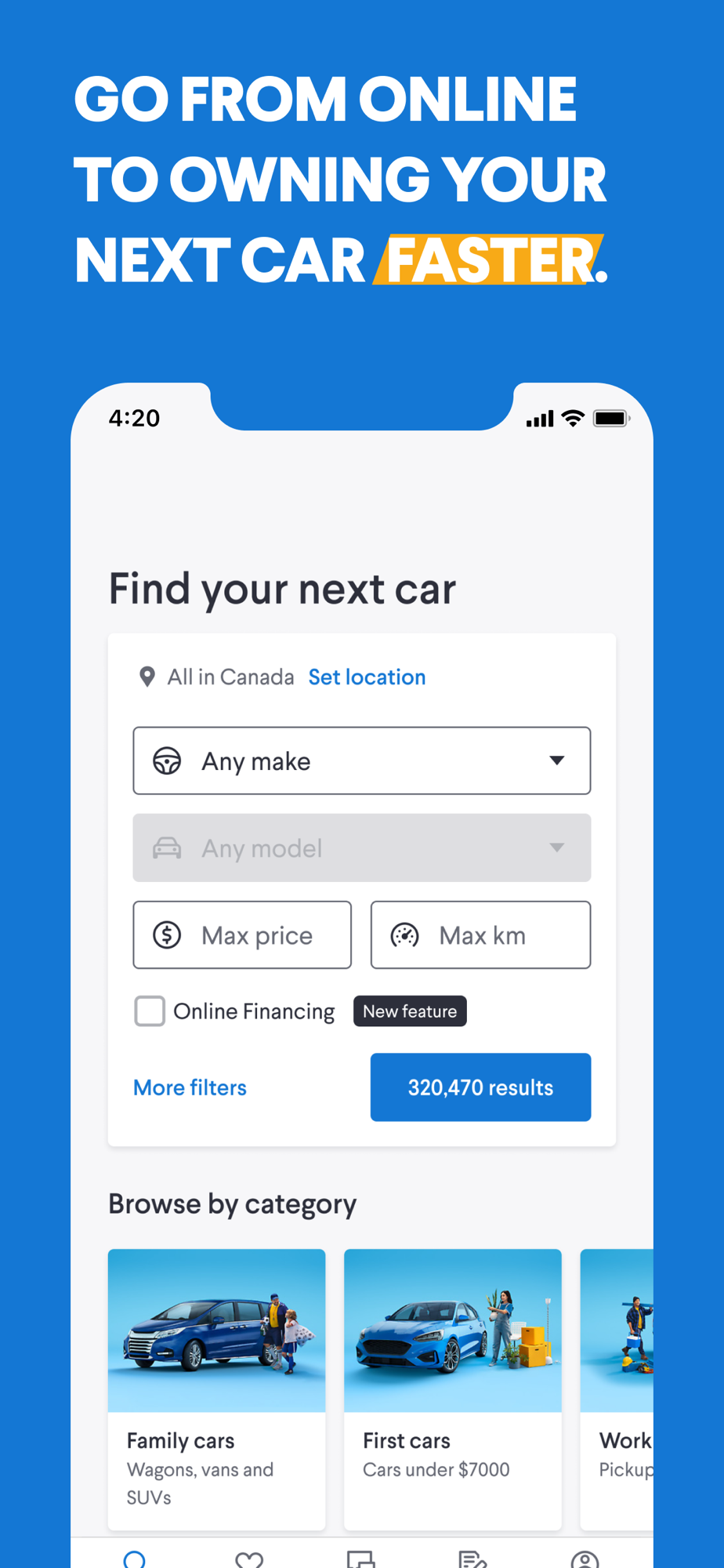 With the Kijiji Autos app, you're only a couple of taps away from finding your new car and getting out on the open road.