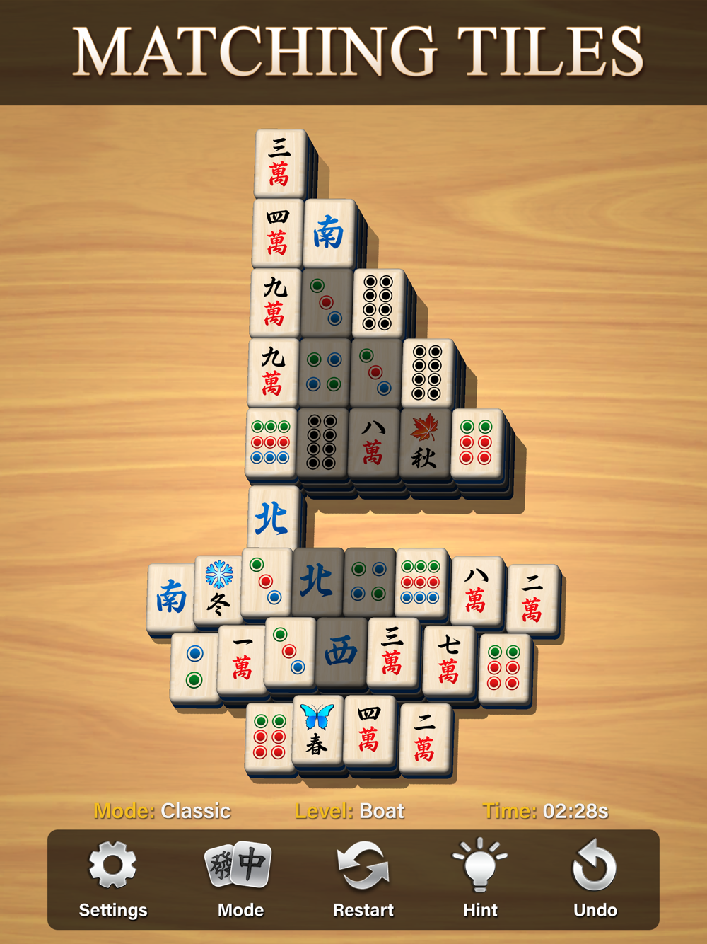 Challenge and train your brain by playing mahjong classic levels with the best free Mahjong solitaire matching tile board game.