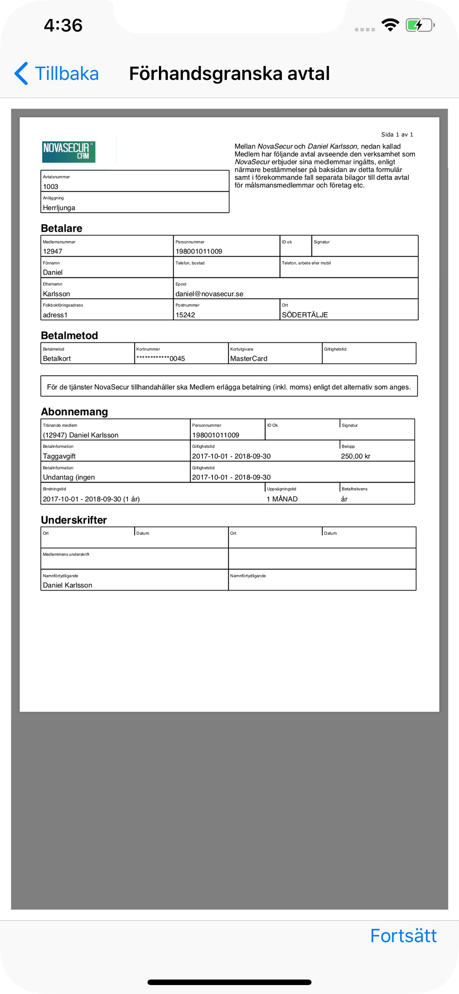 Denna app är för dig som har ett konto i NovaSecur. Appen ger dina kunder möjlighet att signera avtalet över disk. Denna app körs från en dedikerad iOS enhet.