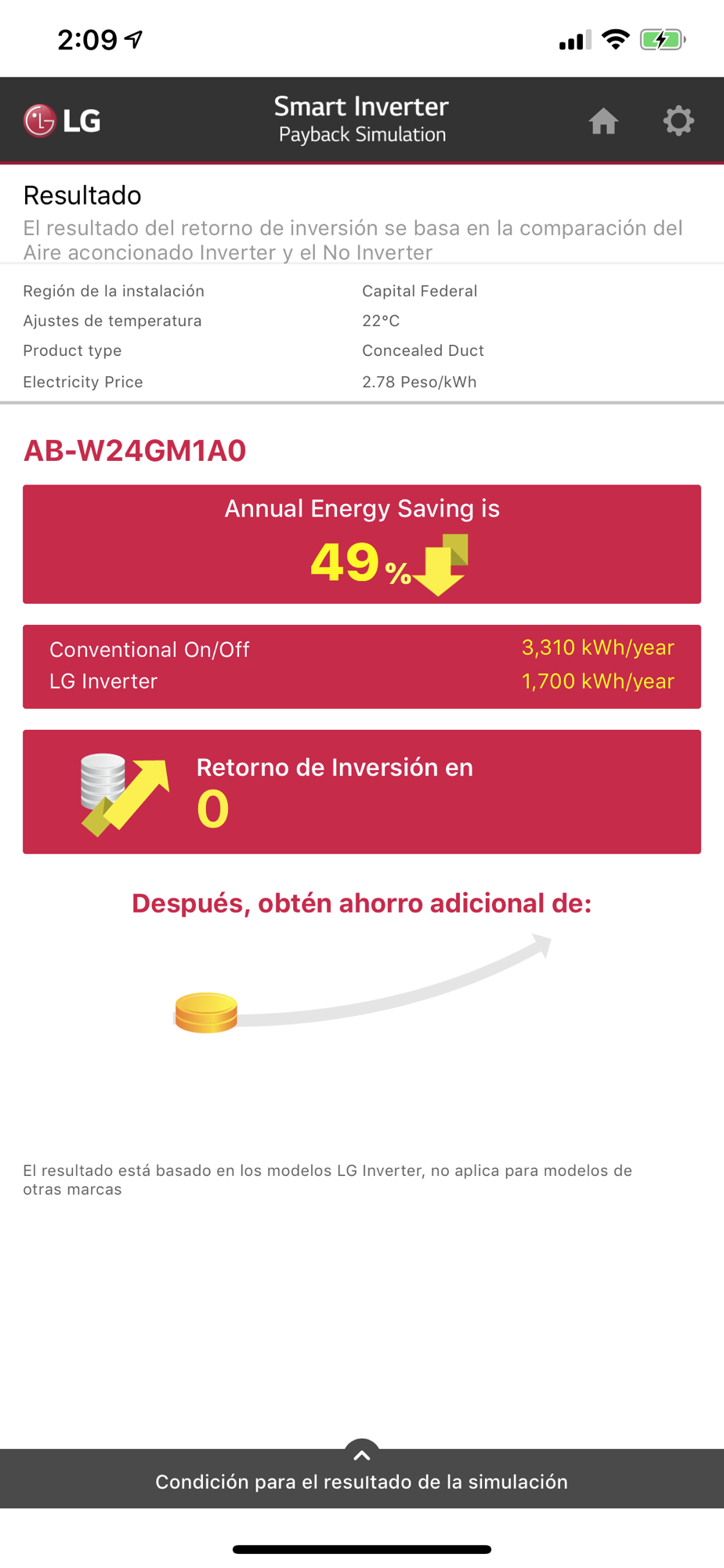 This app is to show payback period and energy saving amount of LG single zone inverter products based on conventional On/Off products with the same capacity.