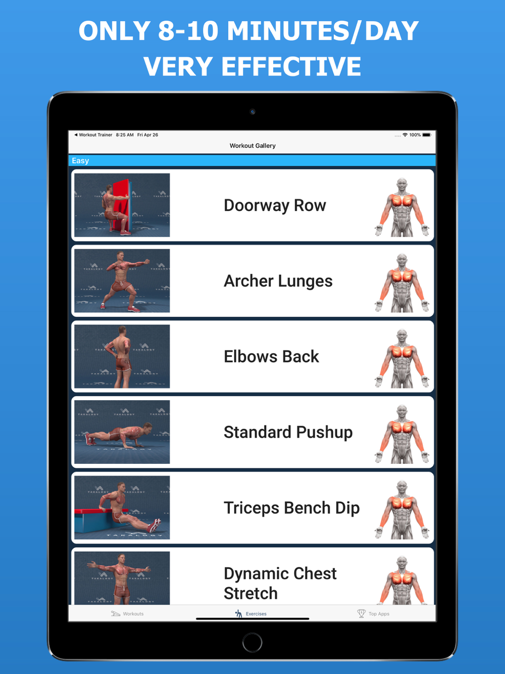 - Only 10 to 20 minutes of full chest workouts. Amazing 30-day training program with your personal trainer.