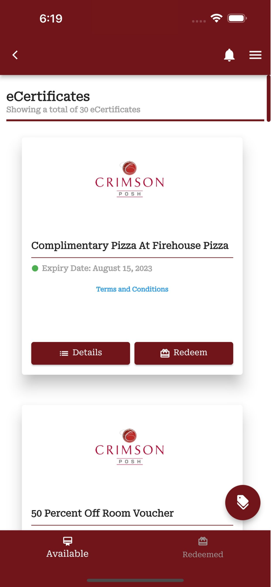 With the Crimson Posh mobile app, members can enjoy the benefits of membership at their fingertips.