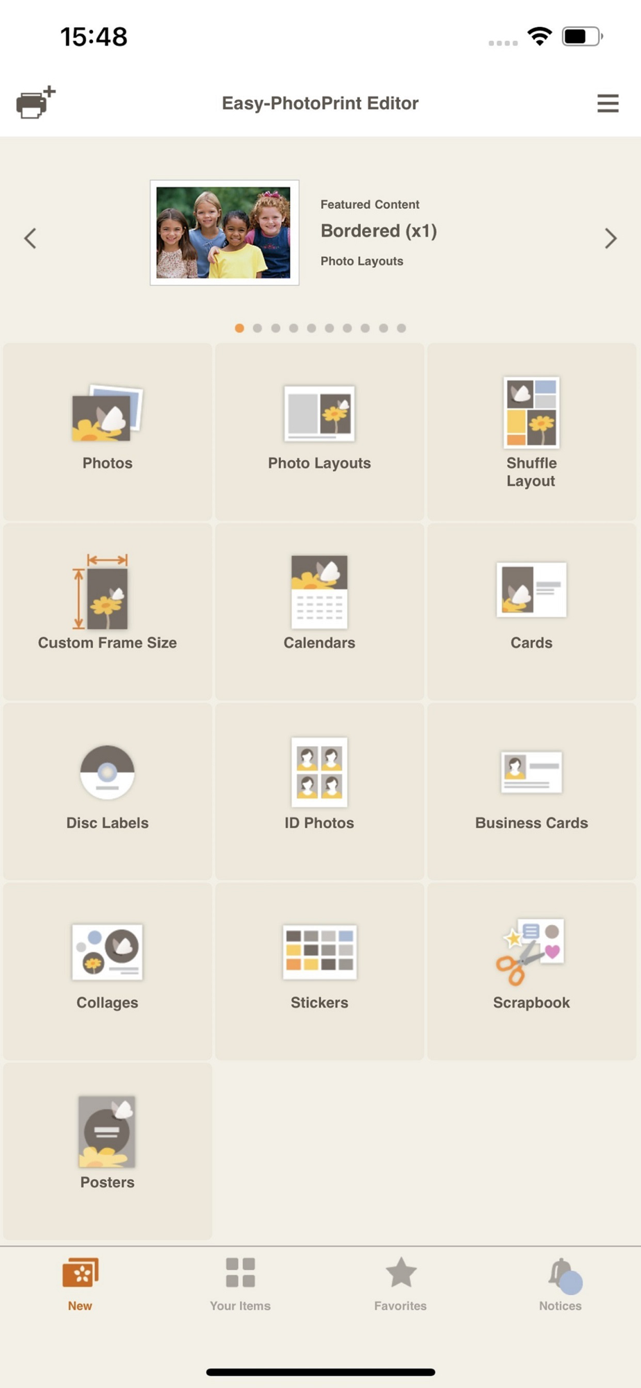 Just select the type of print you want to make, edit and decorate your photos, and print.