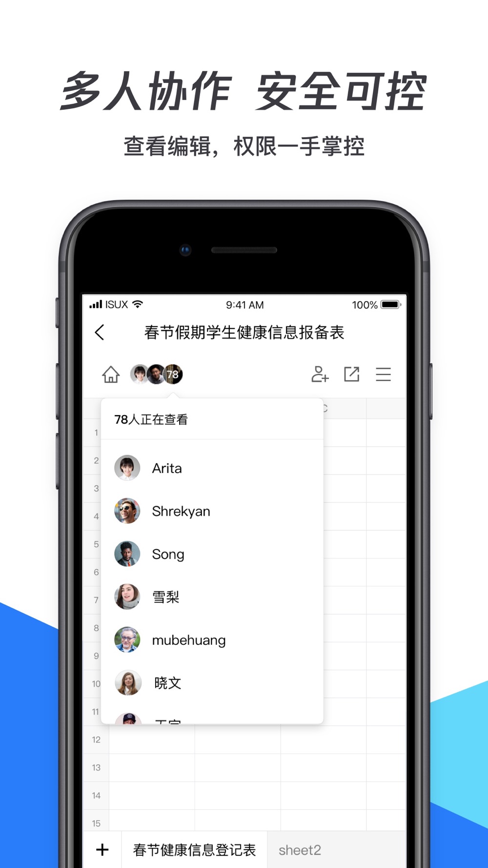 提供健康收集、打卡签到、会议纪要、日报、项目管理等各类模板。可设置他人的查看及编辑权限,更有腾讯技术保障,为你的文档安全上双保险!
