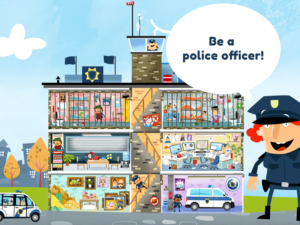 In "Little Police Station“ kids can discover the busy day-to-day life at a police department. Be it the prison cell, the emergency call room or different police cars, "Little Police Station" is a fun hidden objects game which was developed especially for kids. Kids can play through the app in their own speed and discover diverse rooms and landscapes which are full of animations and fun little games. They can go on patrol, catch thieves and bank robbers or mantain order during accidents, there is always something exciting to do!