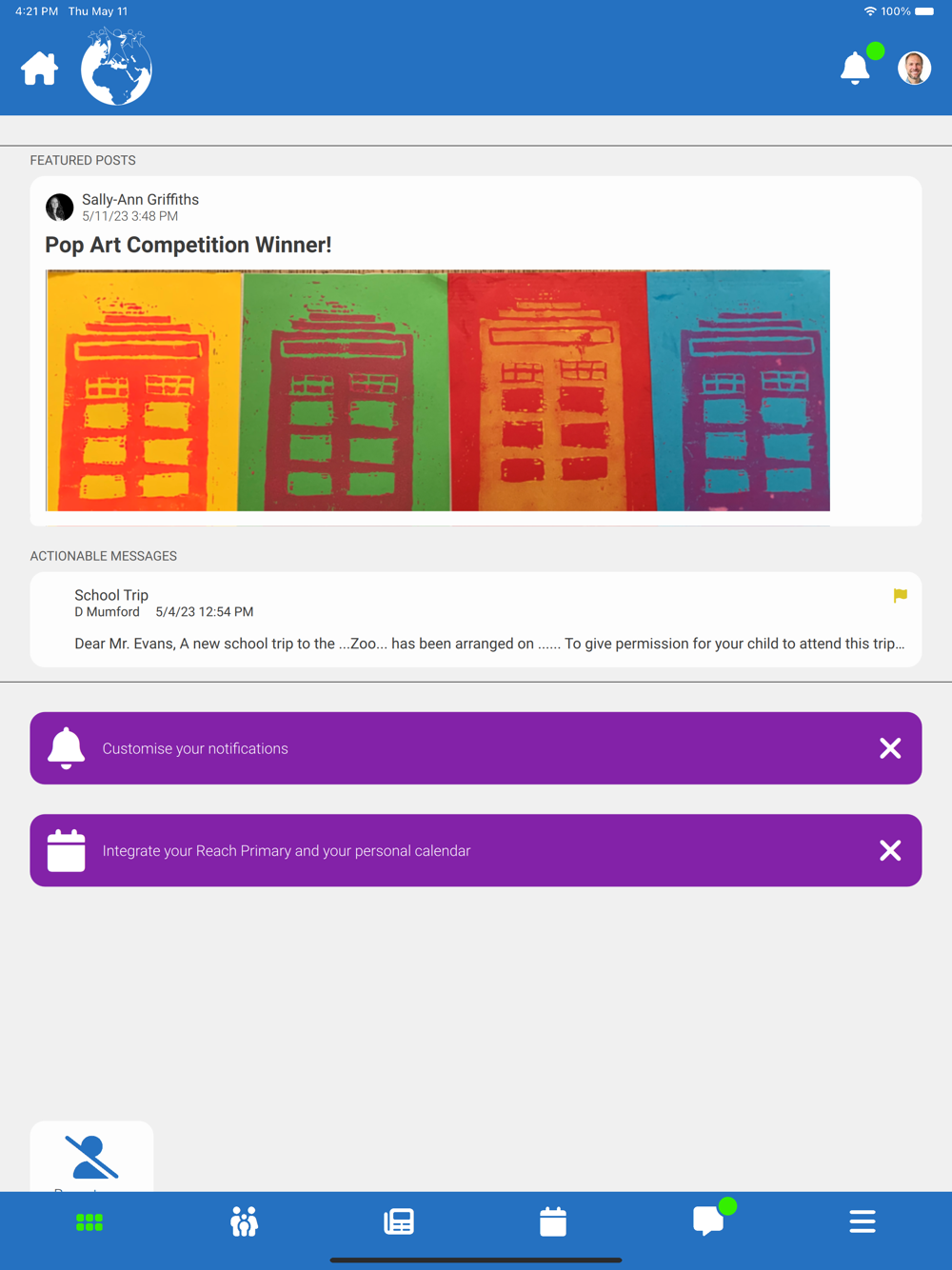 - View the school calendar and noticeboard, with information relevant to you and your child