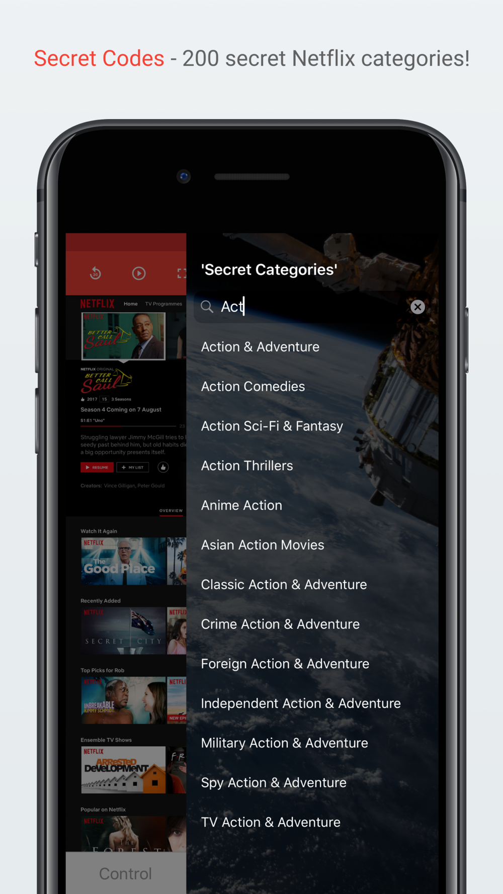 The Netflix browsing functionality even includes easy access to Neflix's 'secret' content codes to make it even easier to find something new to watch.