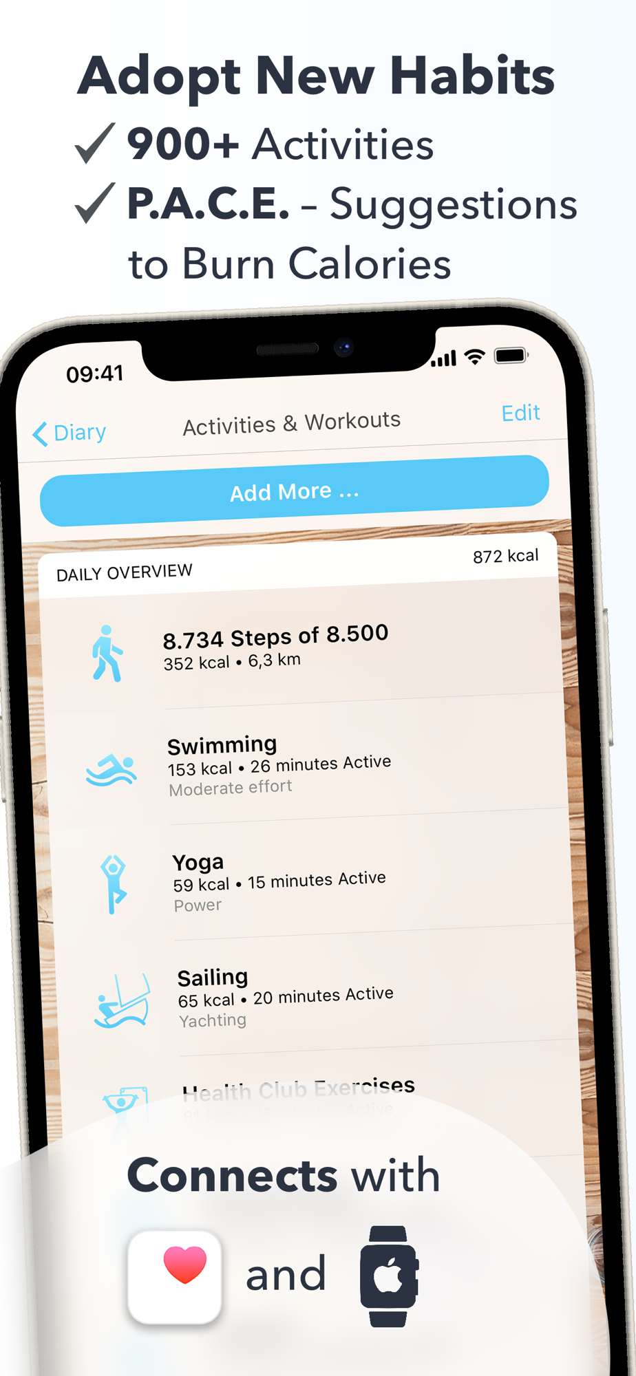 Any activity provides bonus calories. Precisely and automatically calculated against your food intake.