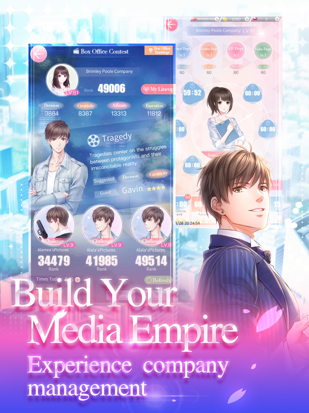 Run your own production studio! You will need to hire employees, produce TV programs (drama, episodes, interviews and more), keep an eye on each detail, and deal with emergencies. Make your own company succeed!