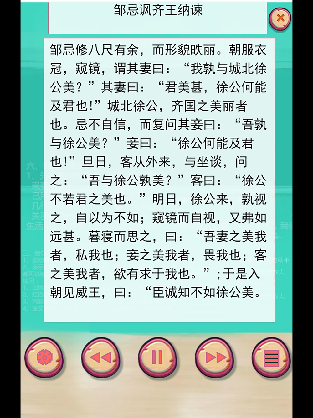 2、全部背诵课文音频播放,单独录制,没有背景音乐,声音清晰,可以设定随机、顺序、单个循环播放方式,方便用户反复听读,加深记忆。