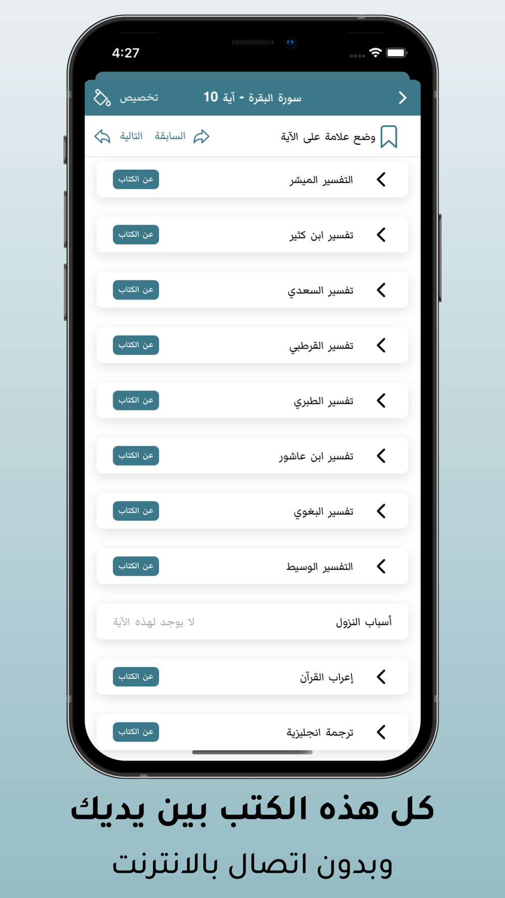 - امكانية ارسال نص الآية أو تفسيرها عبر وسائل التواصل