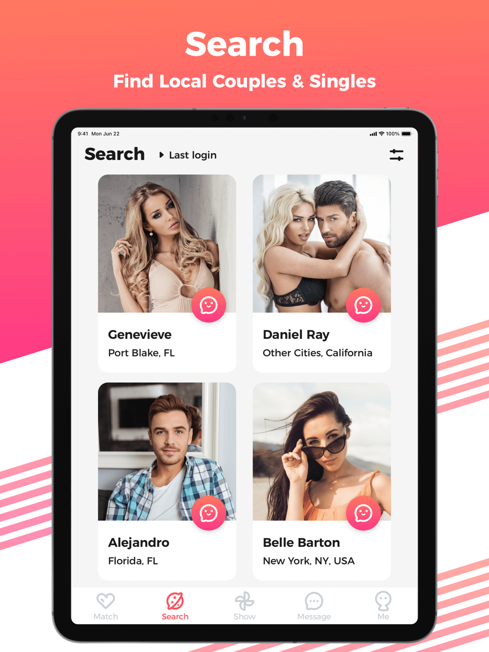 Now, a large number of new singles or couples join 3way every day. They can chat, match, meet and date freely. Because 3way is an open hookup platform, from open-minded couples to curious singles, from straight to gay, lesbian, bisexual, queer or transgender, it is open to everyone who are looking to explore their dating desires in a safe and private space.