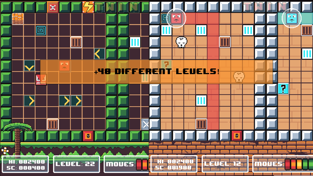 - You control both twins at once, so keep your eyes sharp on left and right boxes of each level