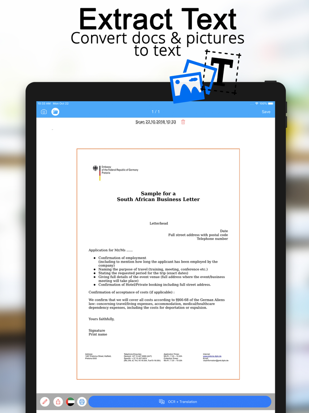 ocr recognizes the text from one page for further editing or sharing. (paid app only)