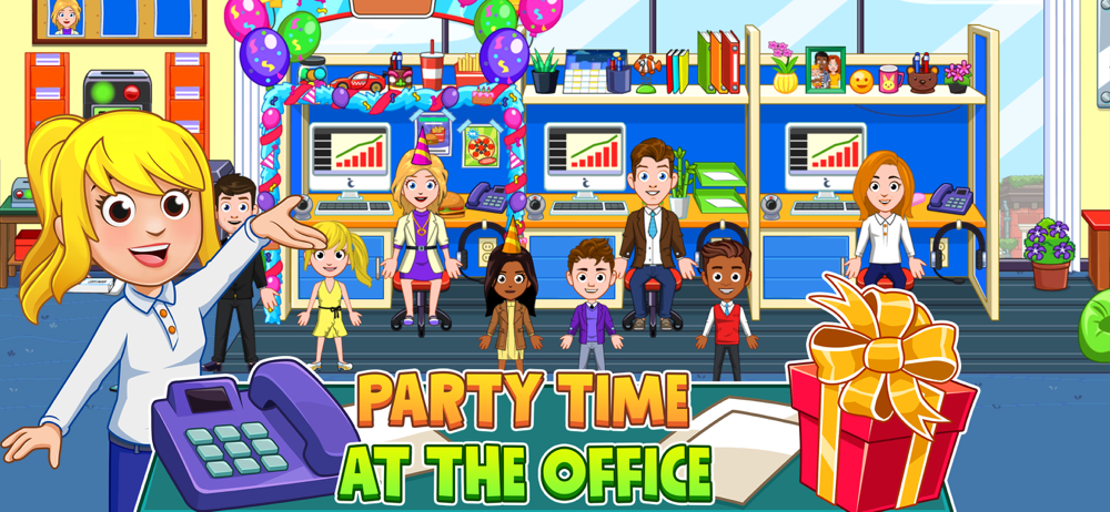 Do you want to discover what it is like to be an adult and work at an office? My City : Office is where you get to create your own office adventure. with one house that belongs to the Boss and four awesome locations to work at, Monday morning has never been so exciting! Hold important meetings, Who will get the employee of the month award? Would you like to work at the television station or perhaps at the Gym? Everything is possible in the new My City : Office !