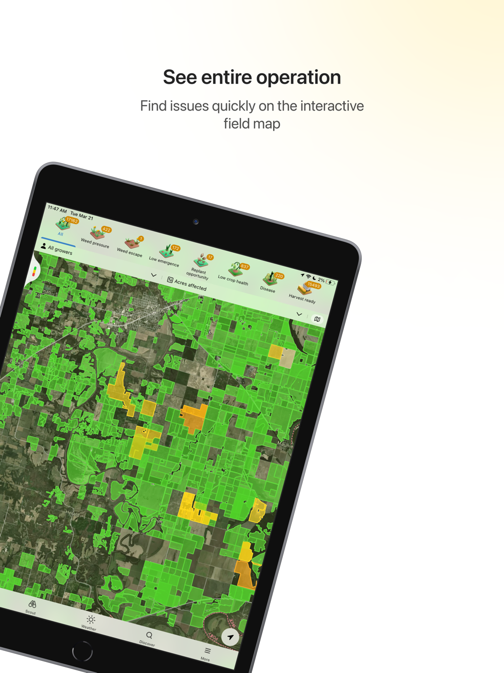 Target the exact areas of crop stress to drive efficient and effective scouting, removing guesswork which gives you peace of mind for every acre.
