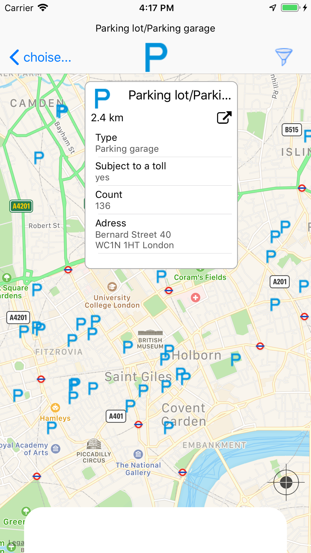 In most categories, you can restrict the search result individually by using appropriate filters. You can e.g. filter for women's parking, disabled parking, LPG gas stations, CNG gas stations or covered bicycle parking spaces.
