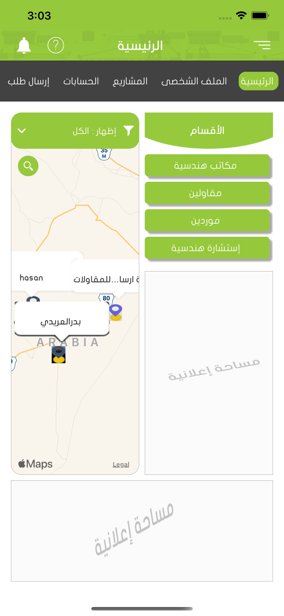 تطبيق إدارة مقاولات يمكنك من التواصل مع مختلف المكاتب الهندسية و الموردين و المقاولين في محيط موقعك في حالة تسجيلك كعميل اما في حال اذا كنت مقدم خدمة فيمكنك من التواصل مع العملاء و ارسال عروض اسعار للخدمات المزوده و اداره حساباتك
