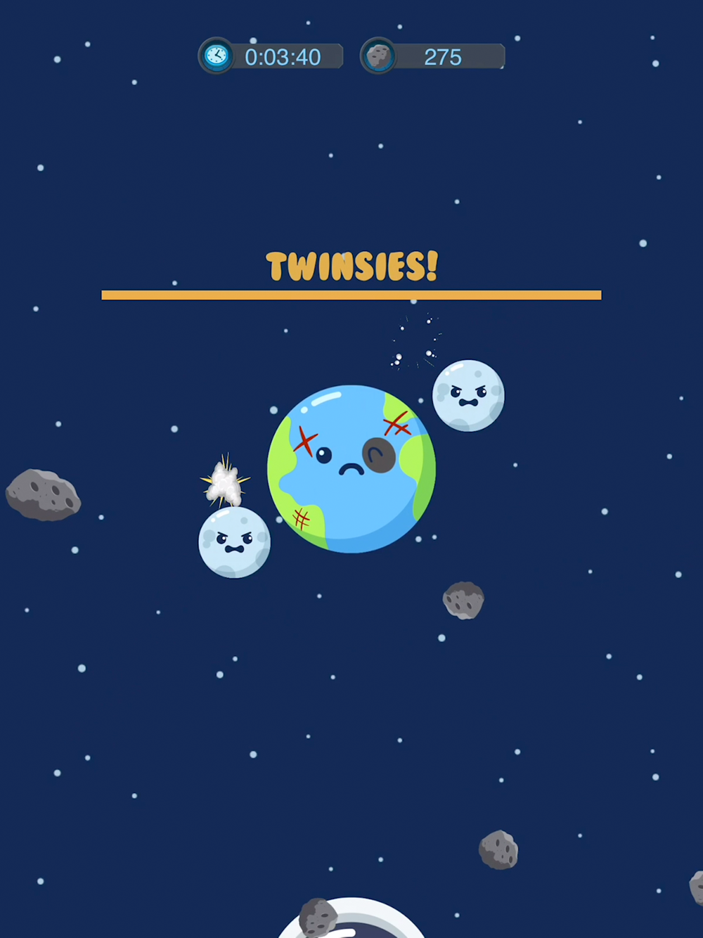 - Twinsies: Two Moons are better than one! Another Moony appears and helps block asteroids.
