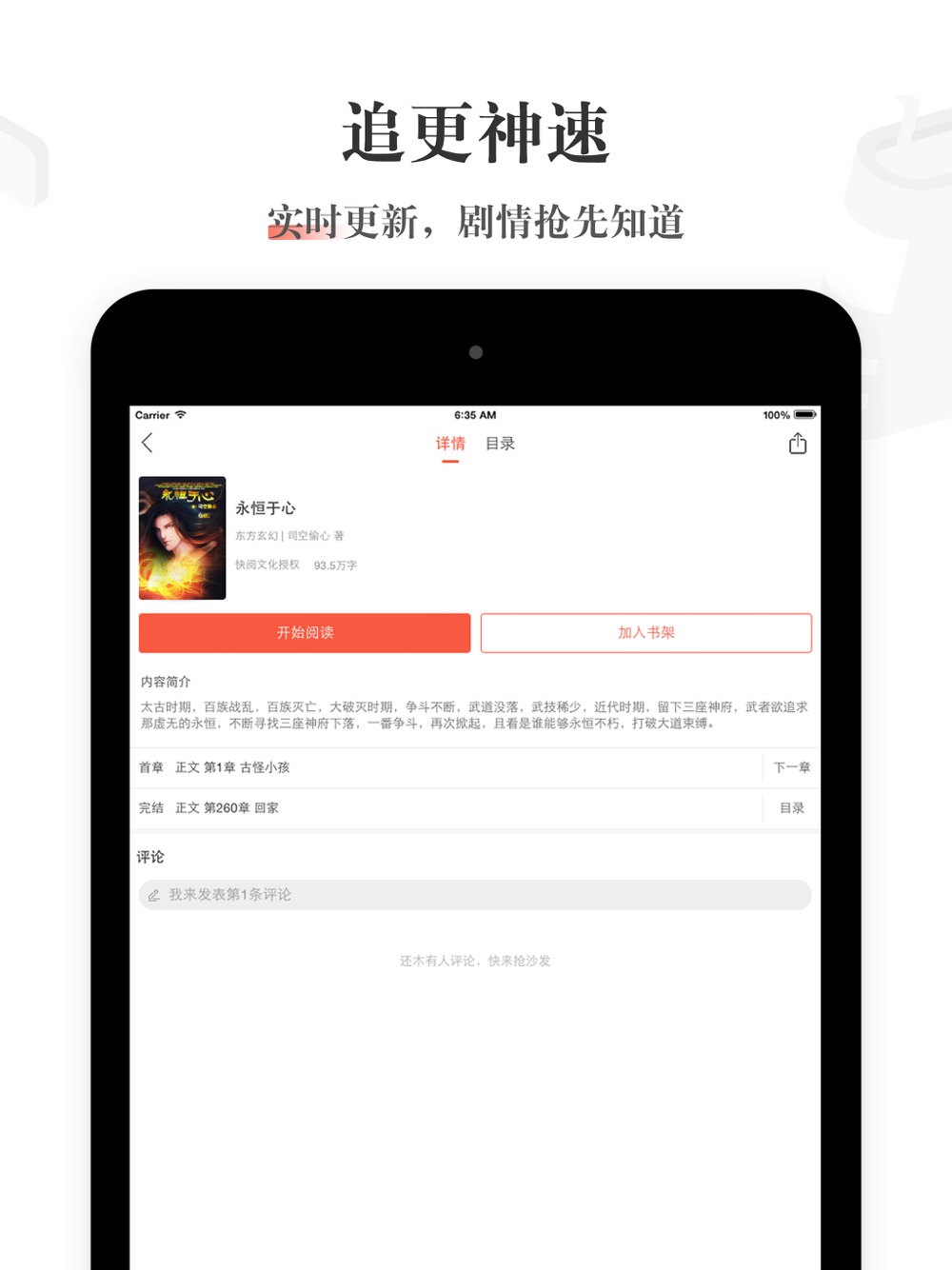 美好的阅读界面,极致对称,字体大小,皮肤切换,预缓存,极速阅读,丝般顺滑的阅读体验。