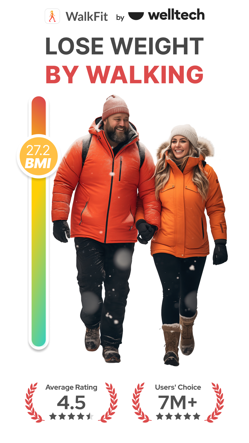 WalkFit is your go-to for walking for weight loss. Daily walking programs are designed to help you achieve the desired weight and improve your health. Get your personal walking plan calculated based on your BMI and activity level. Enjoy your daily walks and lose weight effortlessly!