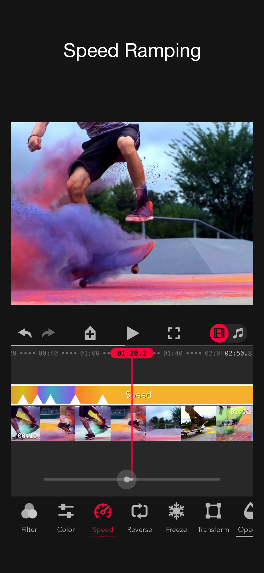 - Speed ramping and video reverse capability for creating custom-made videos.