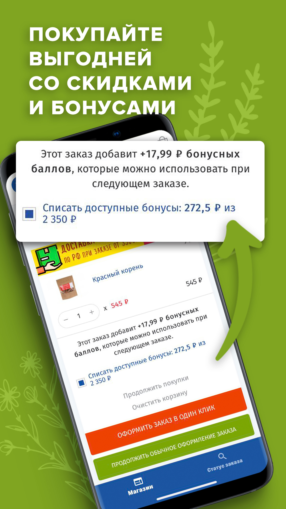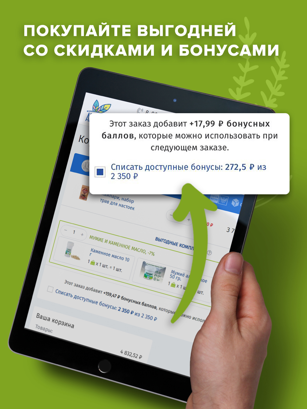 БОНУСНАЯ ПРОГРАММА. За каждую покупку вам начисляются бонусы, которыми можно оплатить до 50% стоимости следующих заказов.