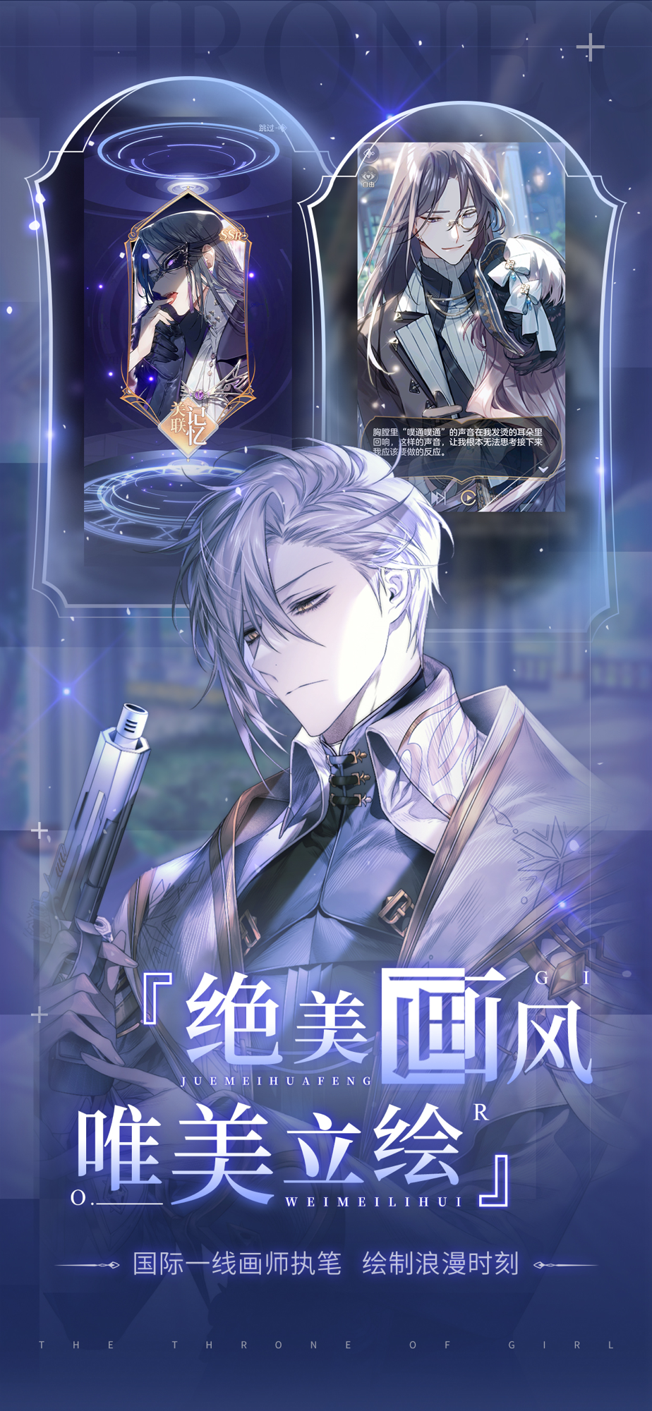 《少女的王座》是由星辉游戏旗下西莉雅工作室研发的一款西幻二次元乙女向剧情RPG手游。以丰满的人物形象,庞大的世界观,多样的装备搭配加上华丽炫酷的半自动回合制战斗为主的移动端角色扮演游戏。复古华丽的美术风格、沉浸式剧情体验,带你进入一个绮丽的世界!