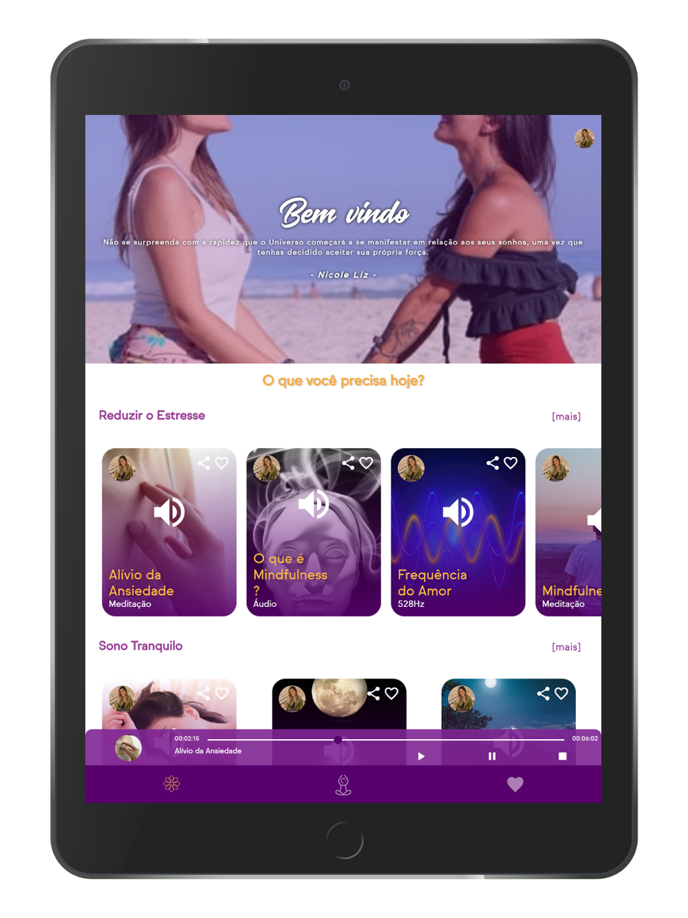 De extrema praticidade, basta escutar as sessões diárias de autoconhecimento e expansão da consciência através de áudios ou praticar as meditações quando sentir necessidade.