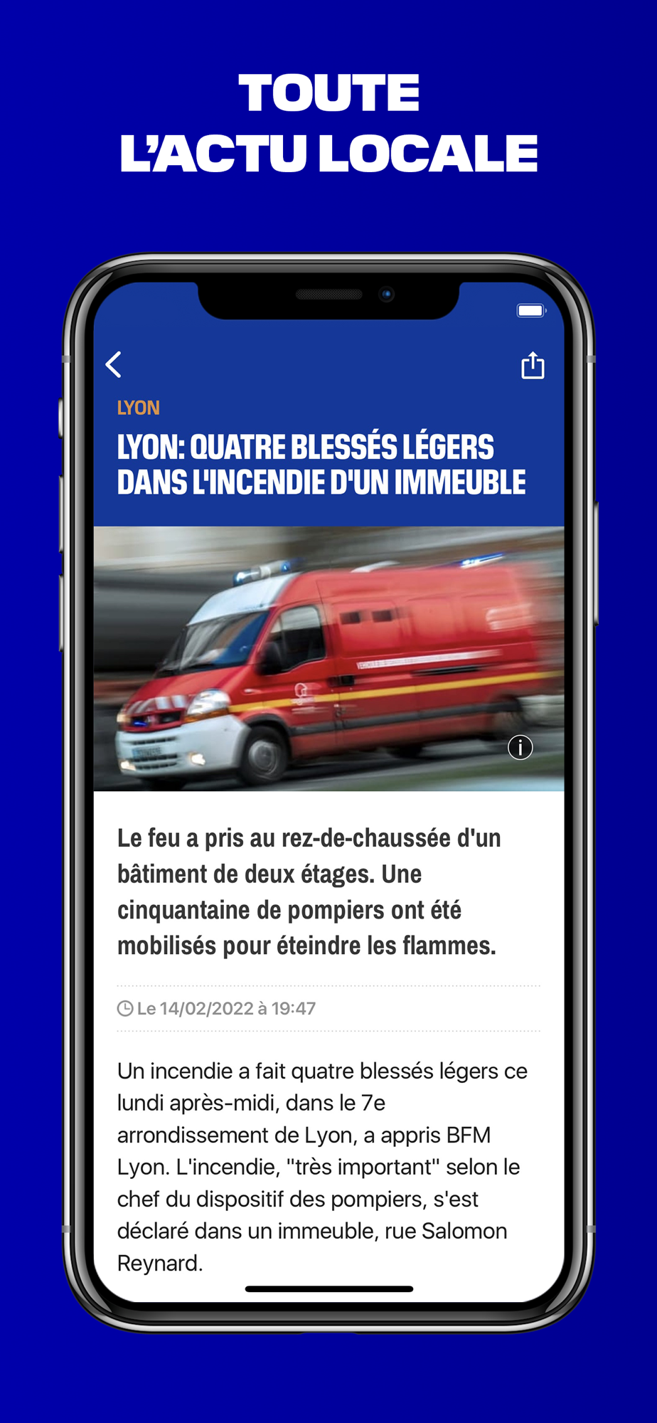 Restez informé(e) 7 jours sur 7, 24h sur 24, des événements marquants à Lyon et dans la métropole grâce à l’application BFM Lyon.