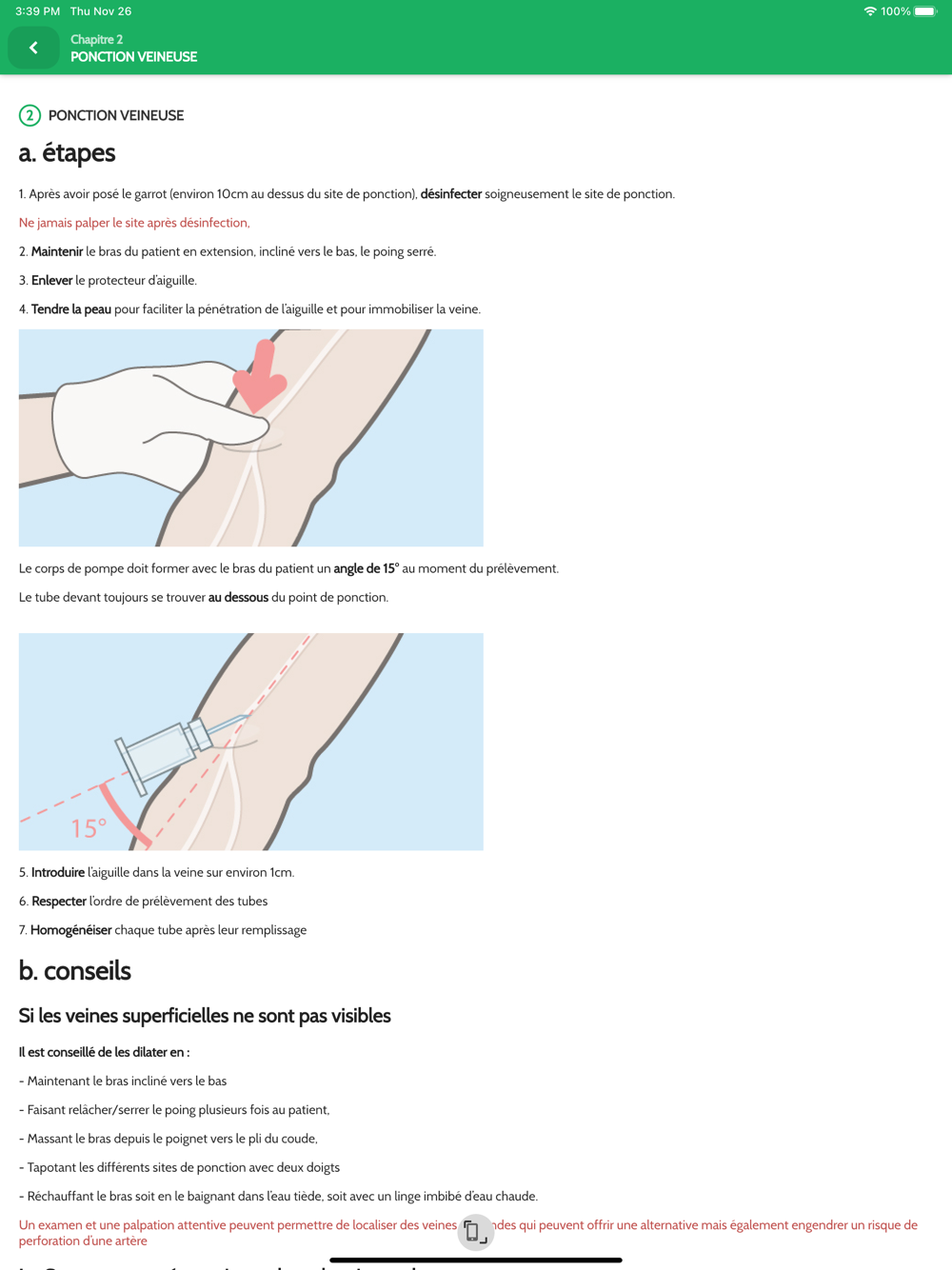 Cette application permet un accès simple, rapide et intuitif à un vaste répertoire d’analyse médicale. Chaque analyse possède une fiche descriptive rappelant les informations nécessaires : nature, tube, température de conservation, délais avant résultat, volume de prélèvement…