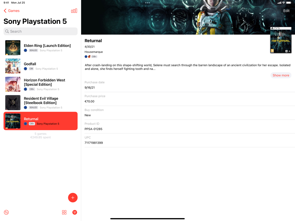 Wether you have a small or huge video games collection, Games is the easiest way to manage it, with more than 70 000 games available, you will be able to list everyone of the game you own.