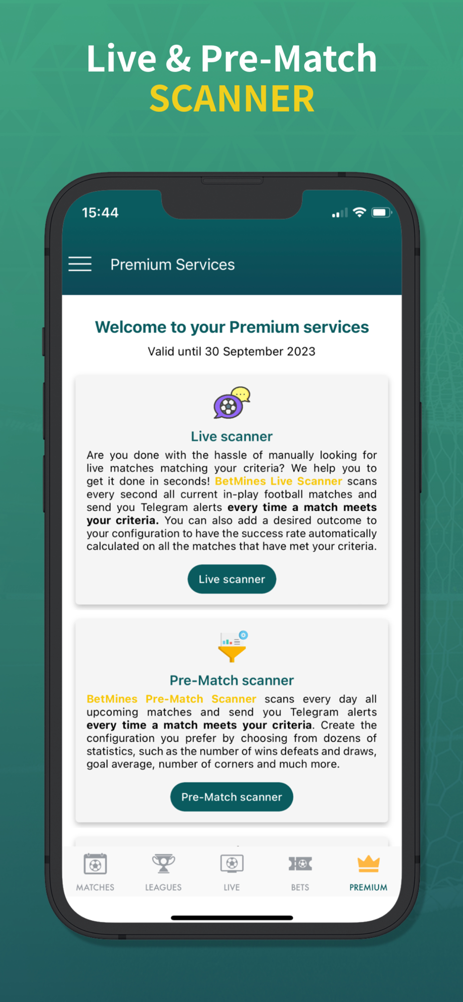 BetMines scanners scan every second all football matches and send you alerts every time a match meets your criteria