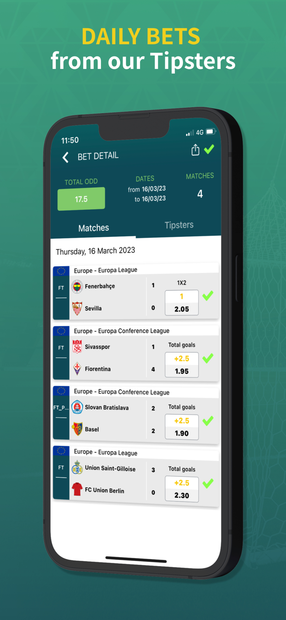 - possibility of receiving push notifications when our suggested bets are published, when a tipster you follow posts a bet or when the bet you placed is winning.