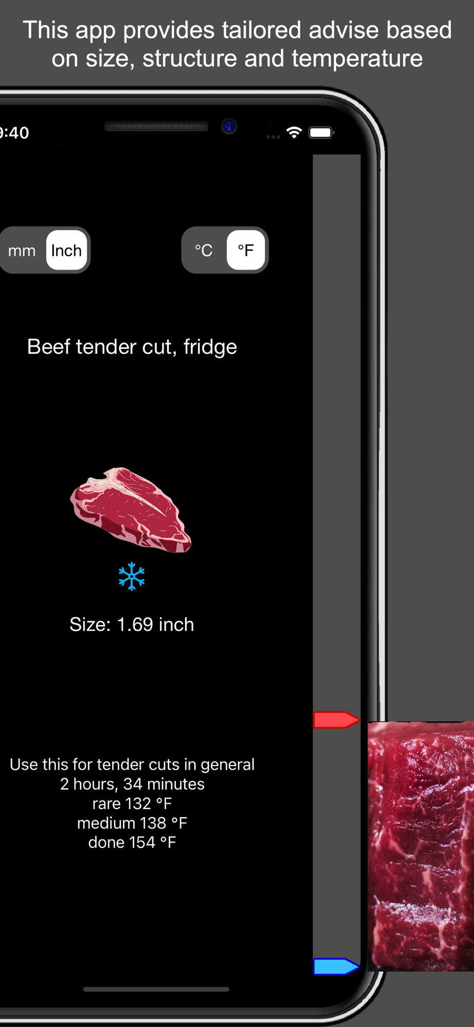 Use your iPhone or iPad as a ruler / caliper to determine the thickness of your ingredient and let this app do the math. Get a tailored temperature and time for any ingredient!