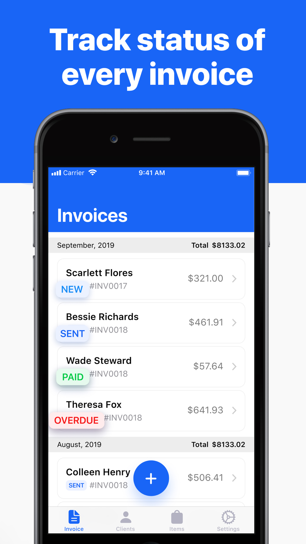 – Set statuses to your invoice for effective performing.