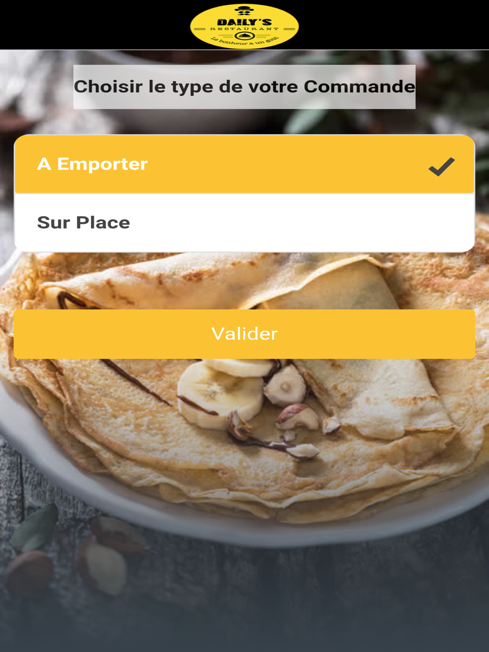 L'application Iphone/Ipad de Daily s vous permet de commander en ligne ou par téléphone via votre application . Vous pouvez consulter notre carte et choisir vos produits .