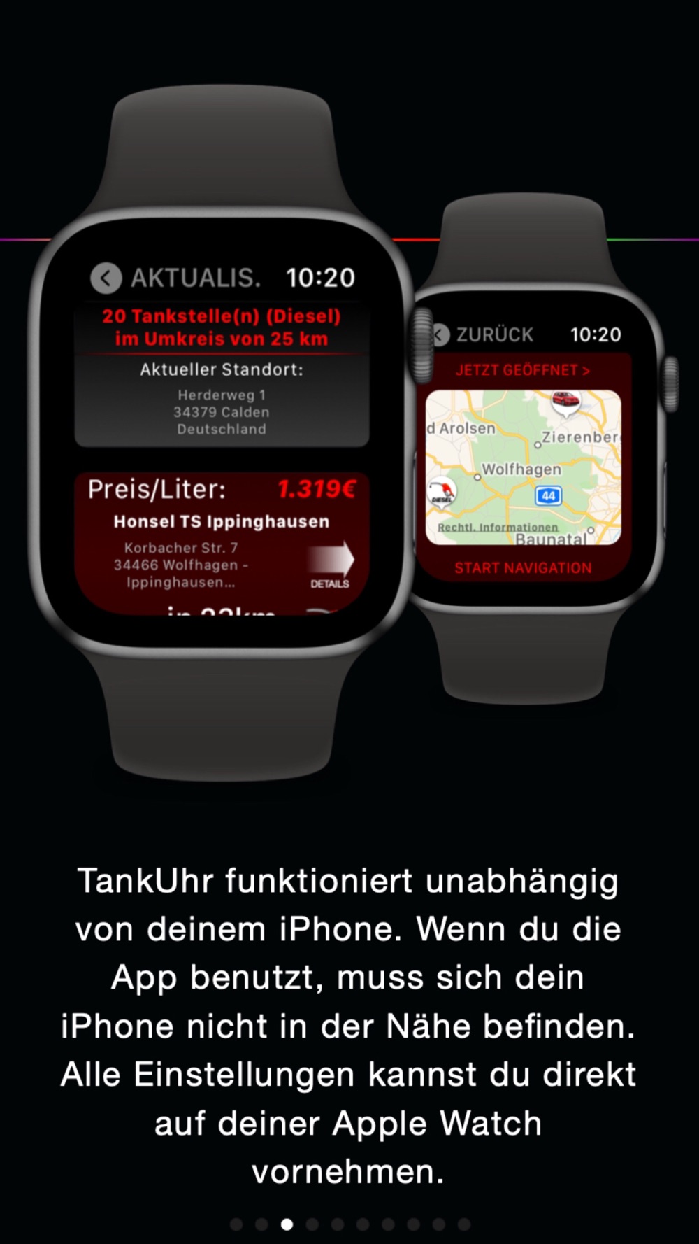 HINWEIS: TankUhr ist eine INDEPENDENT App. Das heißt, dass die App ausschließlich auf deiner Apple Watch lauffähig ist!