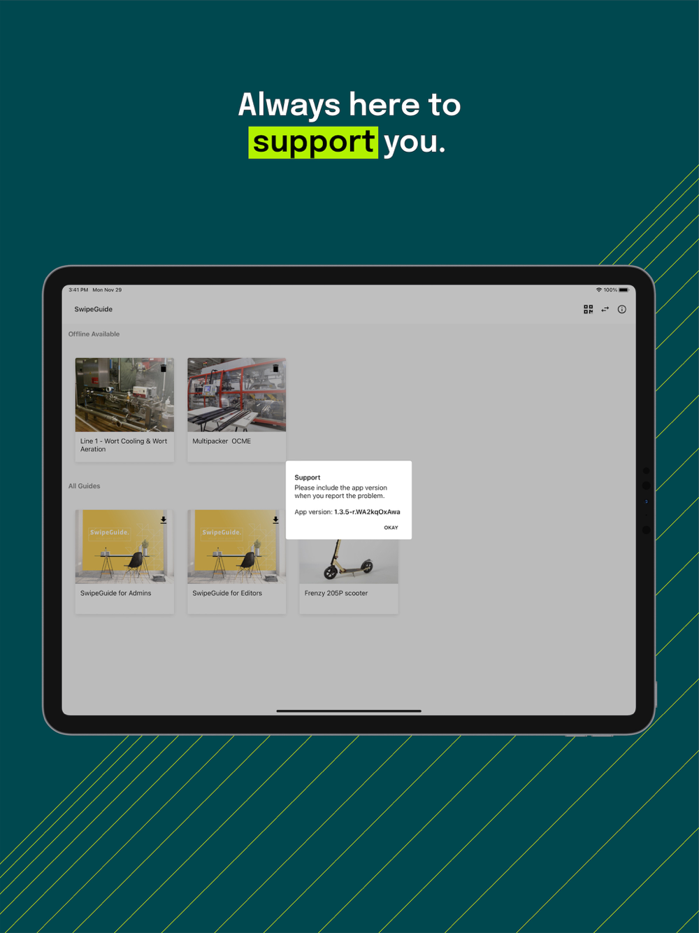 This SwipeGuide app delivers instructions offline to keep you connected to the knowledge you need, when you need it. Before using your instructions in an offline environment, simply connect to wifi and download the work instructions you need to get the job done.