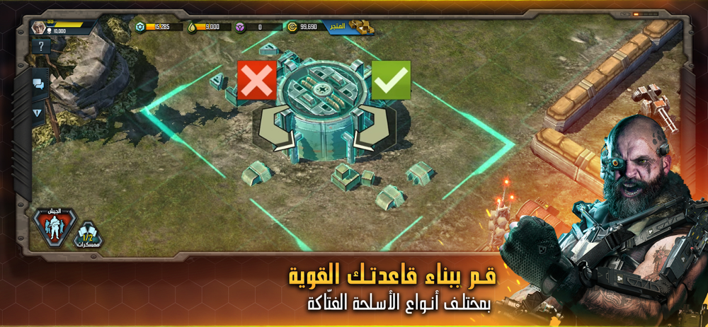 قم بتجهيز منصات الدفاع و الجدران الدفاعية لقاعدتك بالشكل الذي يحمي مركز قيادنك واجعلها حصن يخشاه أعدائك و يتحامى بها