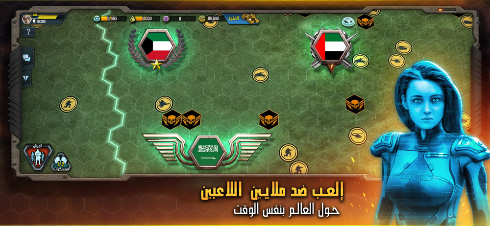 في أراضي الحرب العالمية 3 القاحلة والتي لا ترحم أحد,البقاء للأقوى وللمتحدين. قم بعقد التحالفات القوية لإضعاف أعدائك باستخدام حنكتك العسكرية. قم بضم القوة والعتاد العسكري سوية للحصول على الأفضلية وضمان التفوق.