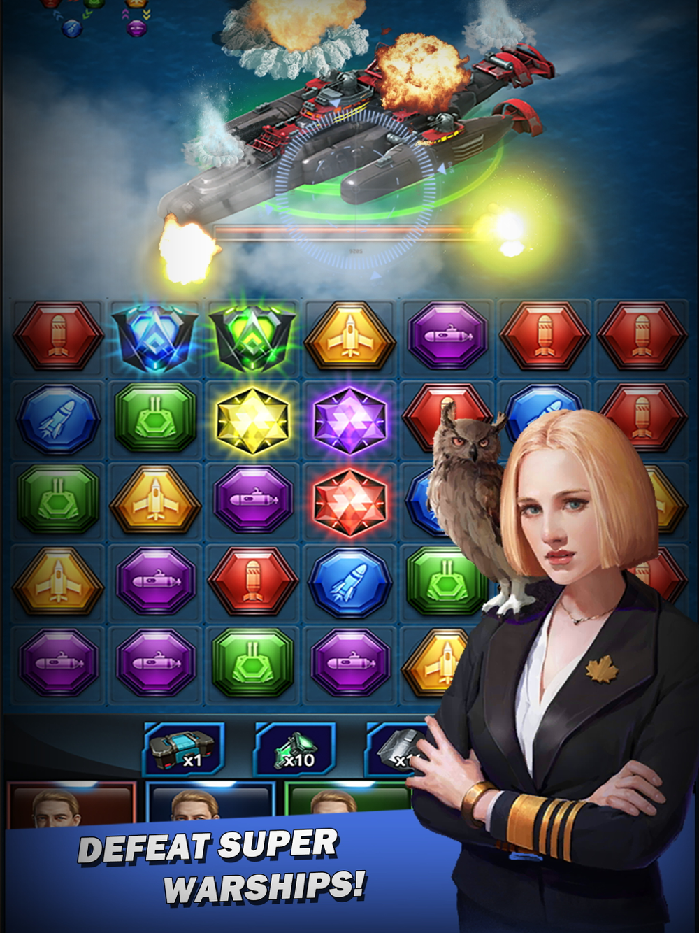 Battleship & Puzzles is a completely new RPG naval battle game with fresh experience, combing match-3 and naval battle features with thrilling PVP duels, and allowing you to forge a strong naval empire and dominate the naval battle.