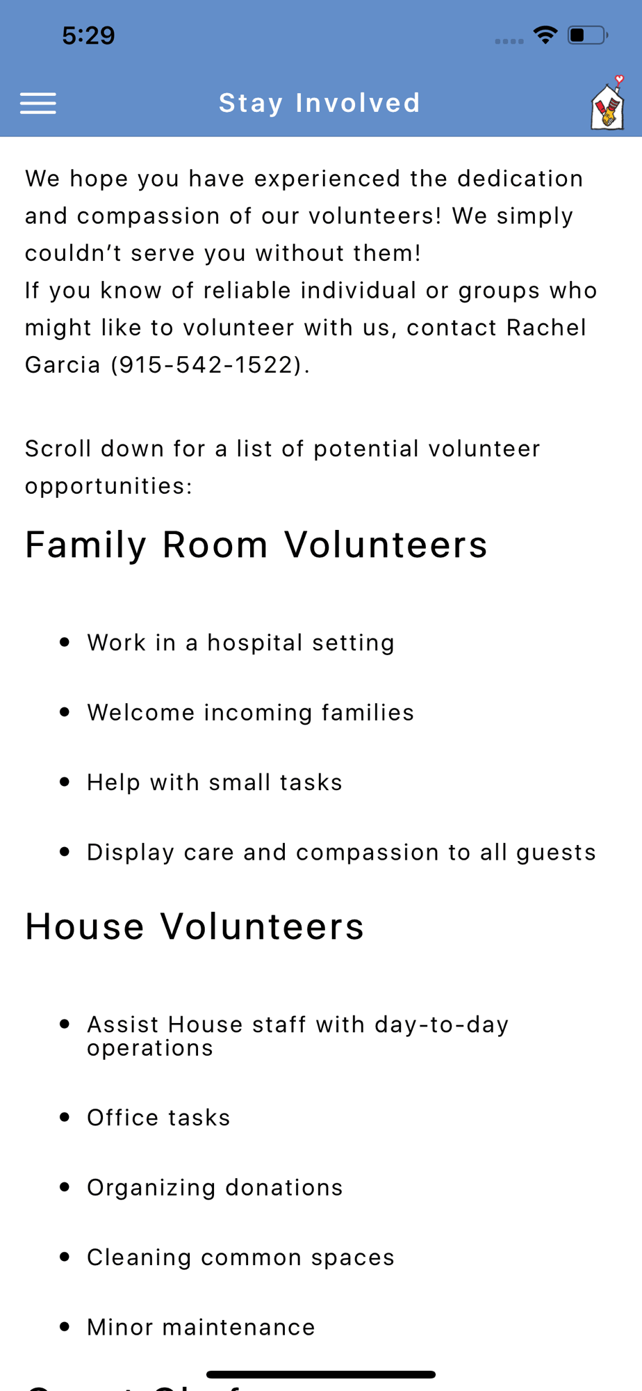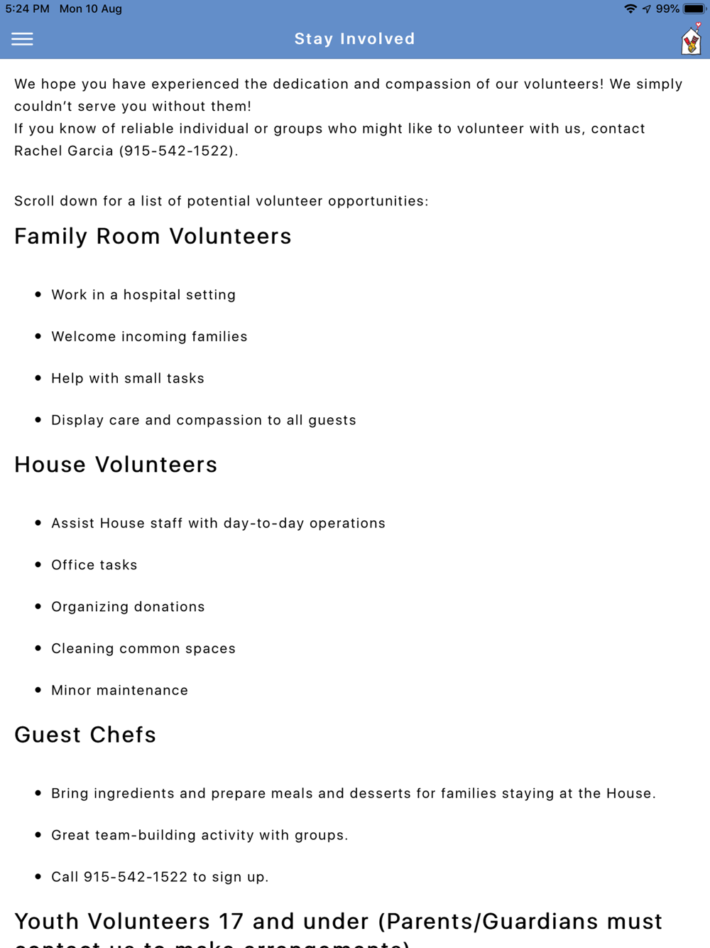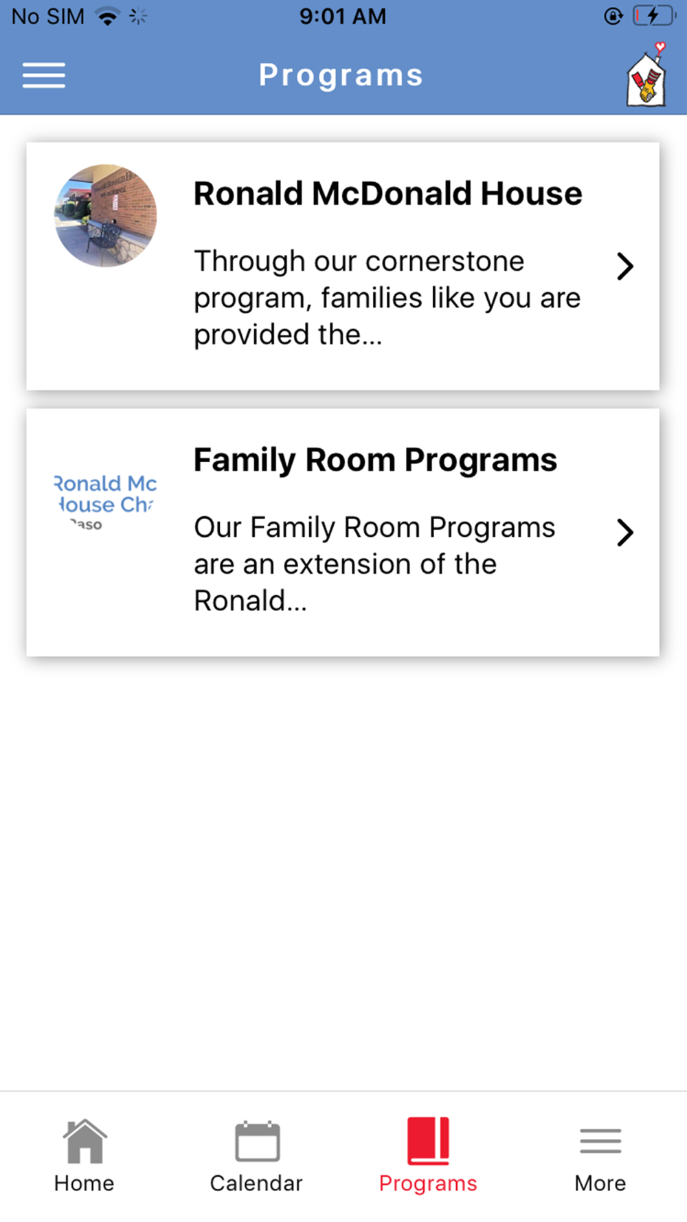 The Ronald McDonald House of El Paso Mobile application was created to help new and current families staying at the House find information about the programs and services available to them.