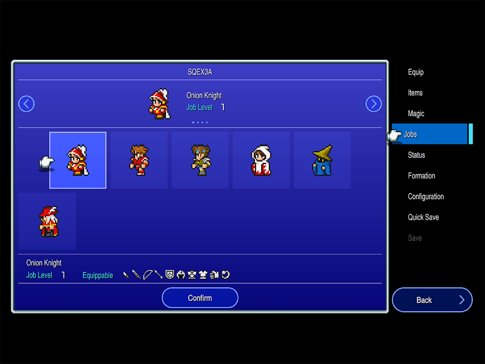 Experience the iconic job changing system first introduced in FFIII - switch jobs at will and use various abilities as you progress in the game. Change into a variety of classes like Warrior, Monk, White Mage, Black Mage, Dragoon, Evoker, or even call monsters to do your bidding with as a Summoner.