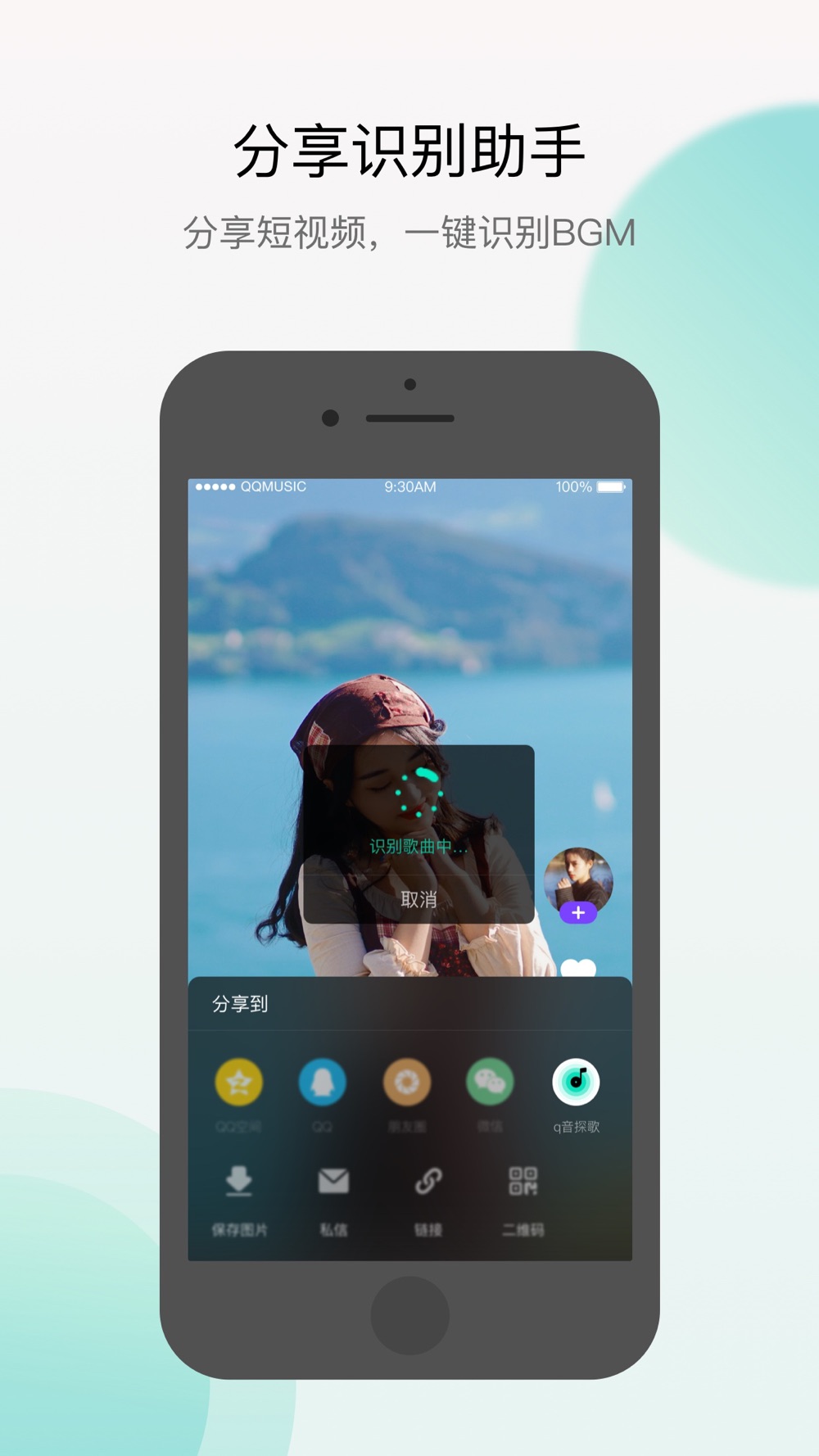 · 后台识曲:Q音探歌放置后台时依然可以保持识别状态,识别到歌曲即可收到通知